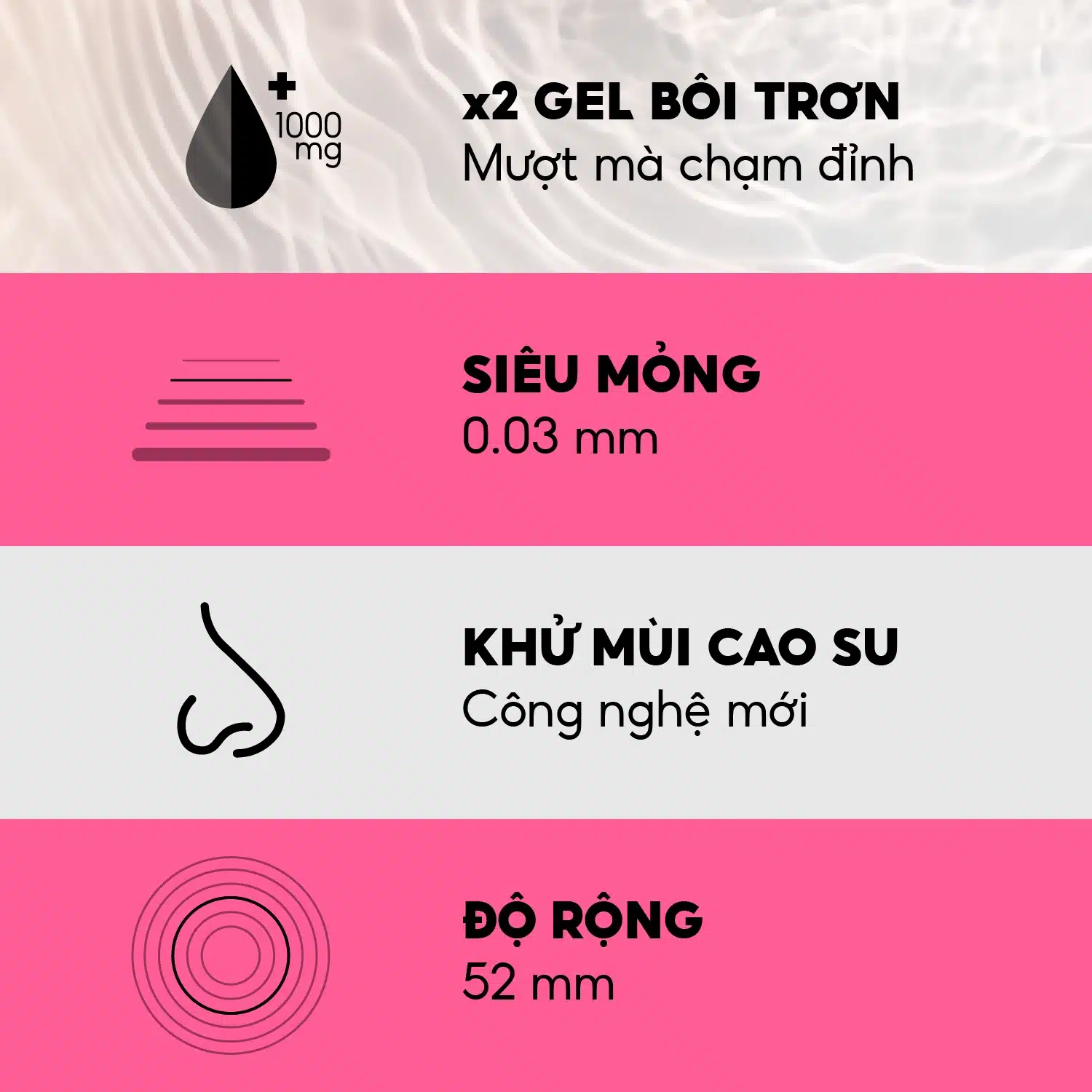 – Chất lượng: Nguyên liệu cao su thiên nhiên và gel chất lượng cao nhập khẩu từ Thái Lan.