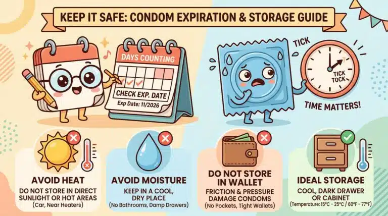 Bao cao su có hạn sử dụng 3–5 năm. Tìm hiểu cách bảo quản đúng, dấu hiệu hết hạn và lý do không nên dùng...