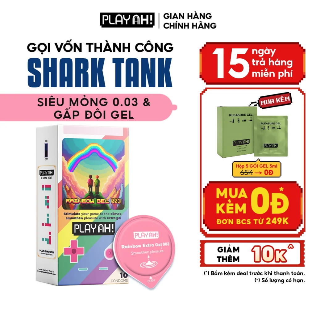 / Bao Cao Su PlayAh Rainbow Gel 003 Hộp 10 size 52mm siêu mỏng, nhiều gel